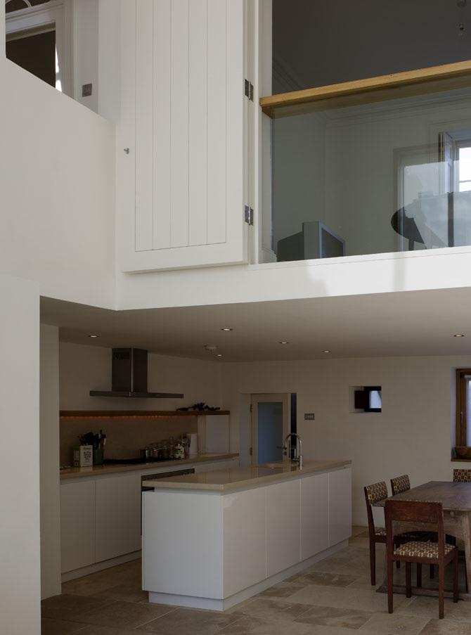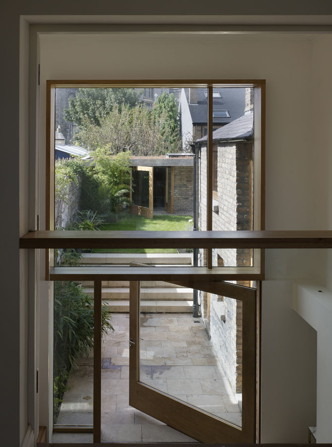 Opening up the restricted garden level rooms of a modest late Georgian two storey over basement house to provide kitchen, living areas and drawing room with views to garden and dome of local church.